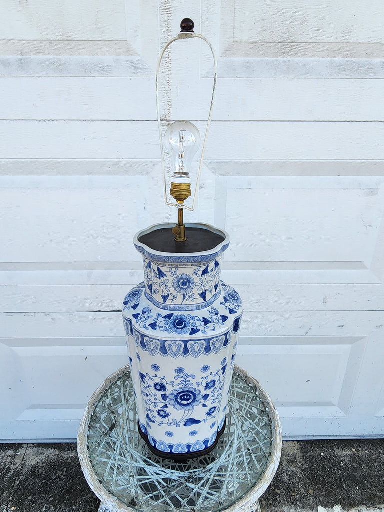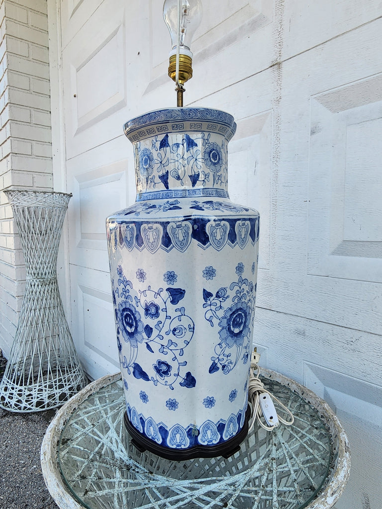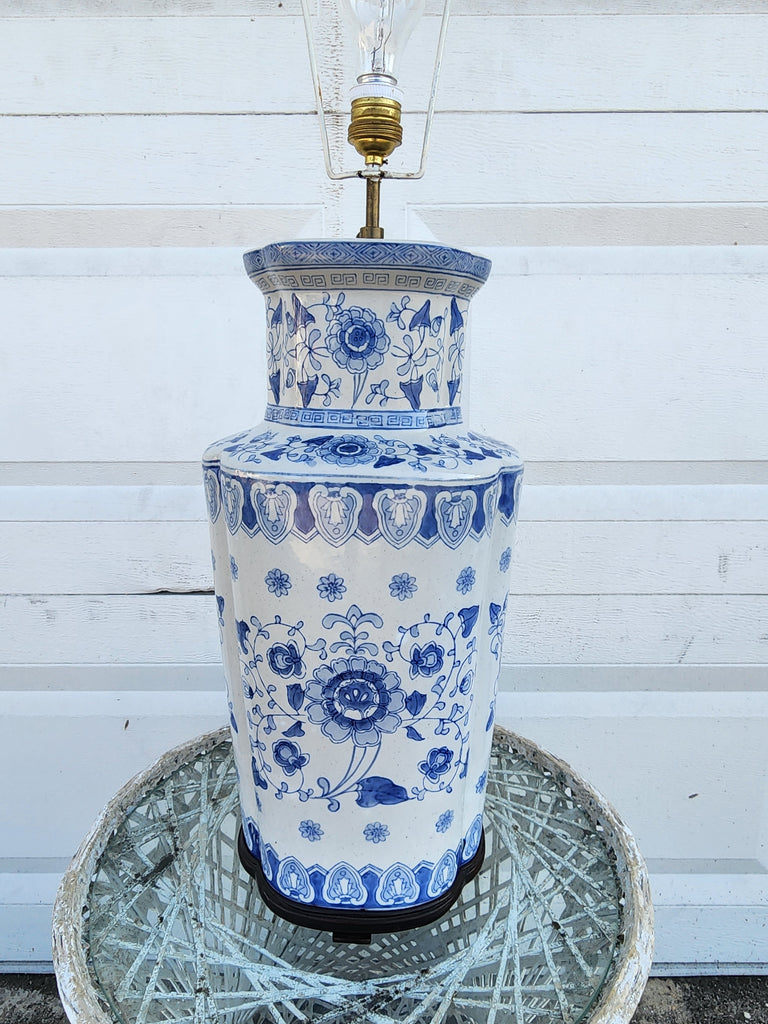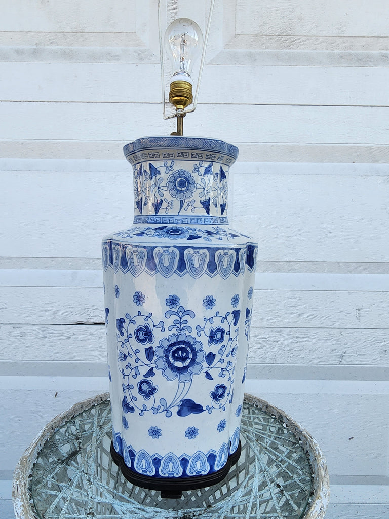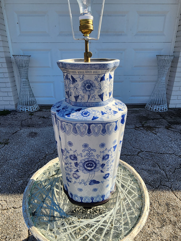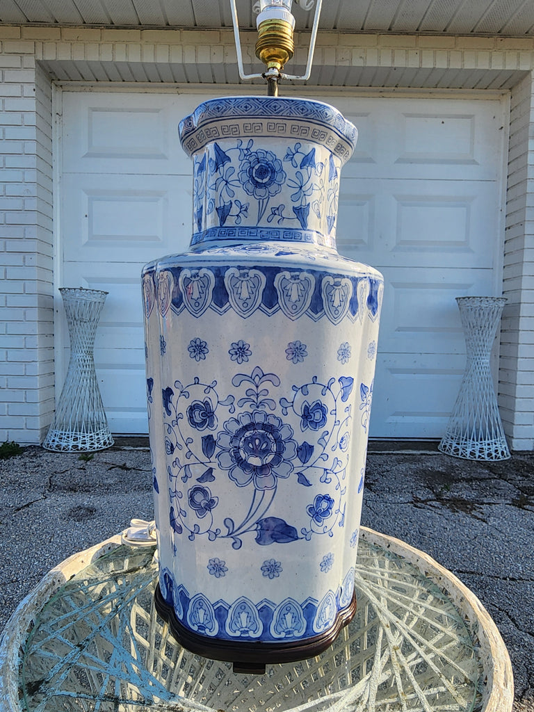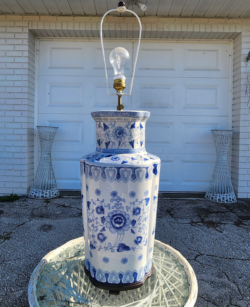 The REAL! VINTAGE BLUE & WHITE FOREVER ONE OF A KIND CHINOISERIE GREEK KEY ASIAN MOTIF LAMP you've been waiting for!! It's LARGE & will DEMAND ATTENTION‼️💙⛩️🤍‼️